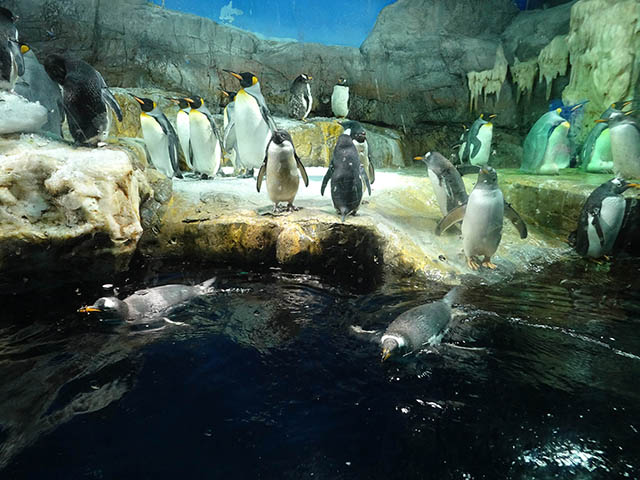 海遊館ではアデリーペンギン、キングペンギンと一緒。