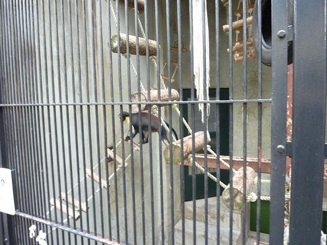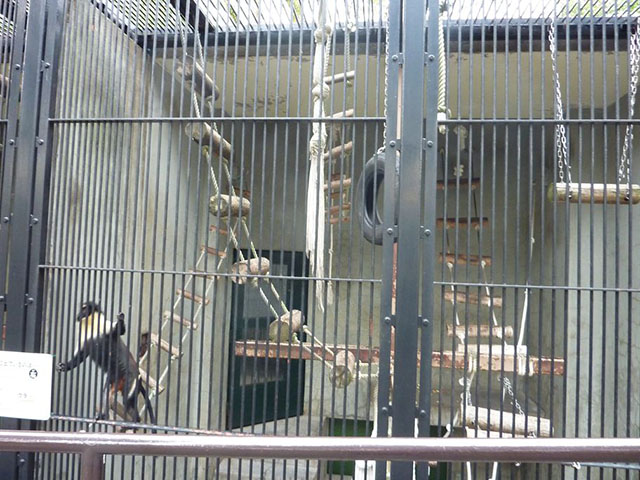 器用に檻をつかんで横移動。
