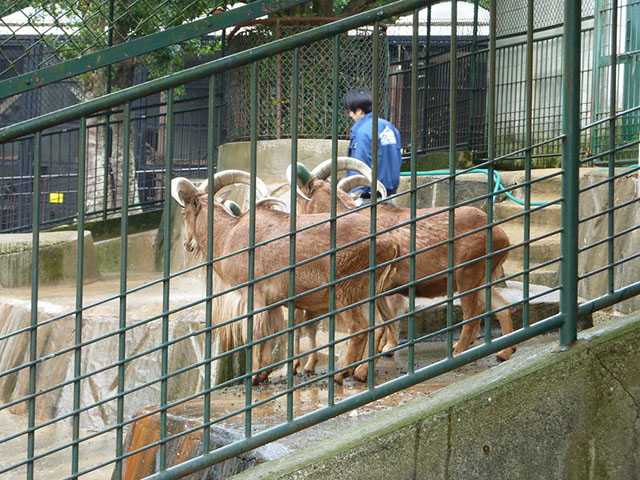バーバリーシープの所に戻ってきたら、飼育員さんが掃除をしていました。