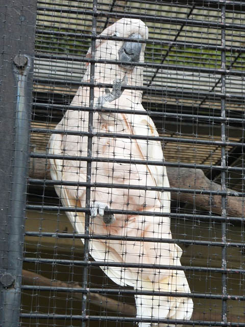 力強く柵にしがみつくオオバタン。