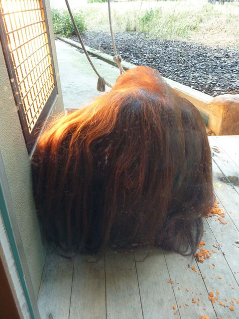 なお、取りつけられているはしごは人間が上るために必要なものであって、オランウータンは無視です。