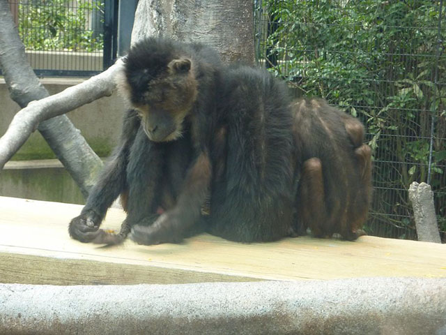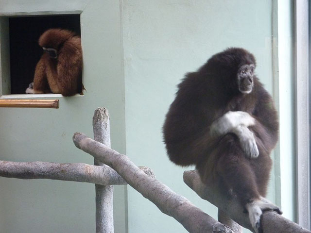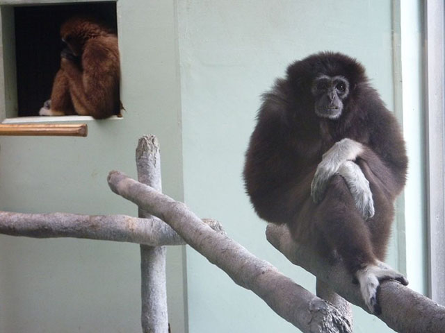 お馴染み、手袋をしているかのようなシロテテナガザル。