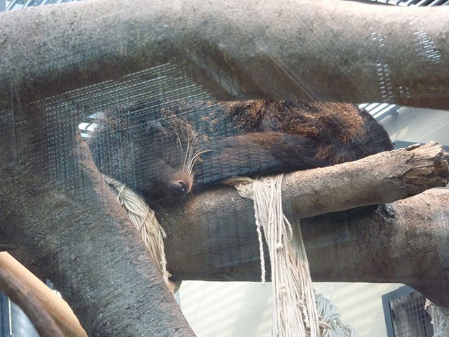隣のレッサーパンダを覗くと、木の上でじっとしていました。