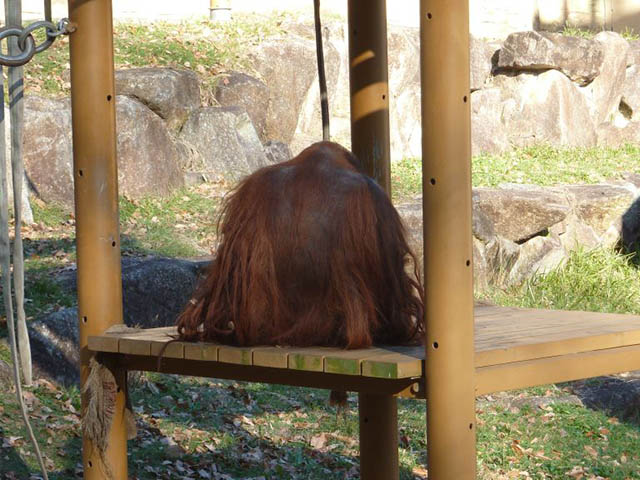 高台を降りるとボルネオオランウータンの施設が見えてきます。