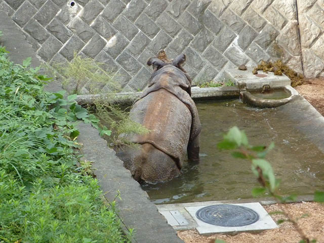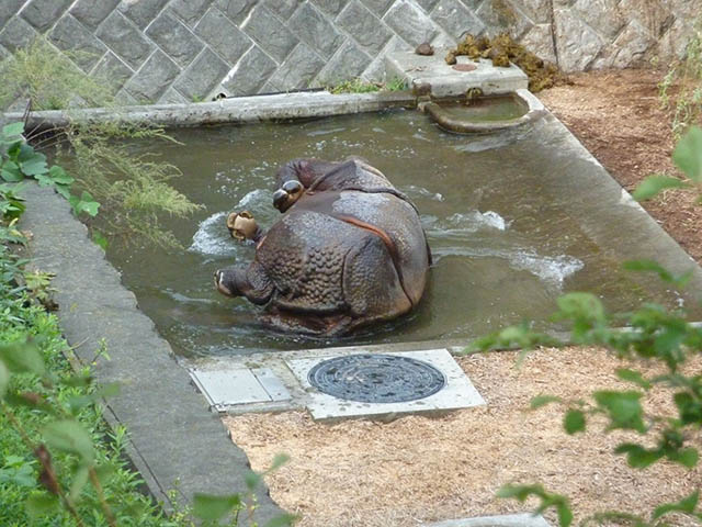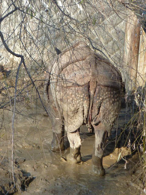 アフリカのサイと違って、ホームはけっこうぬかるんだ所のようです。