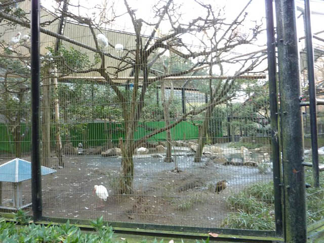 そして、数分歩くと、最後の動物ブロック、鳥舎が見えてきます。
