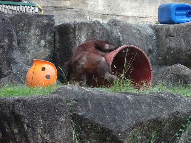 室内ではまた別のオランウータンたちがブラキエーションして大騒ぎ。