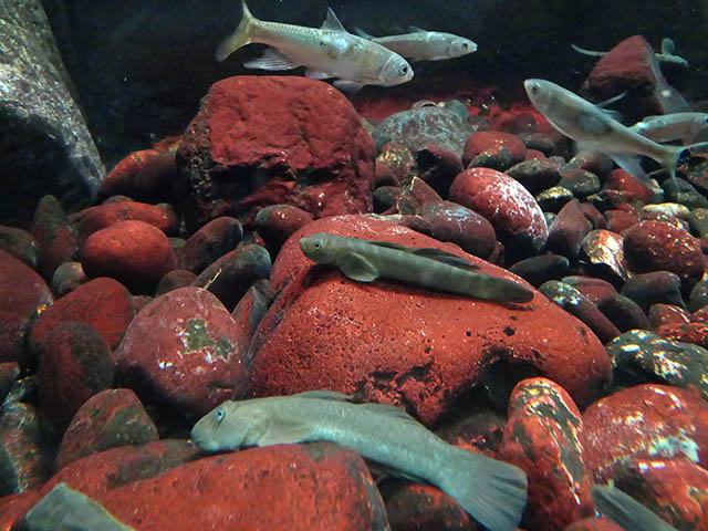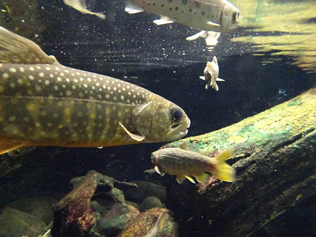 水鳥たちの奥に進むと、分園の目玉ともいえる水生物館があります。