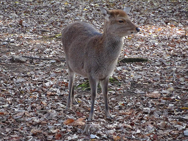 園の中央には大放飼場があり、シカやタンチョウがいます。