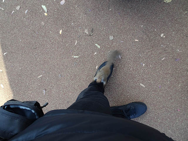 他のリスより小さくて動きもそんなに速くなく、逃げようともしない。