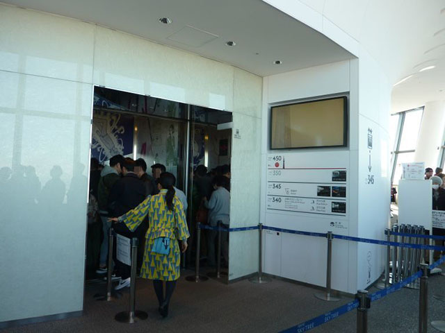 そして、エレベーターに乗り、1分ほどで地上350メートルの第一展望台「「展望デッキ」に到着。
