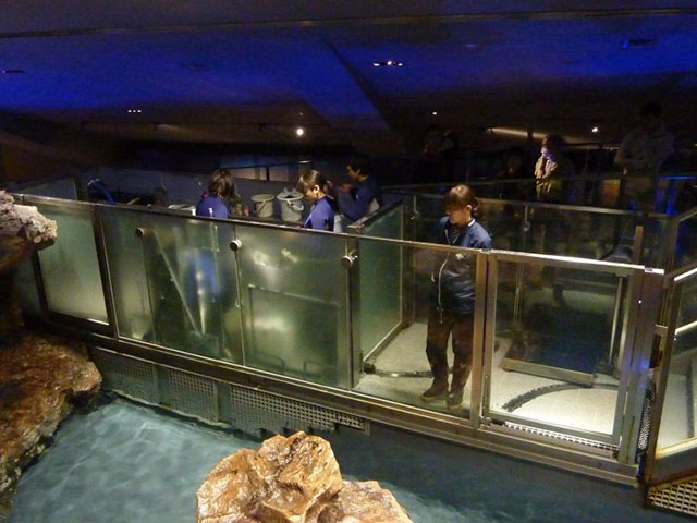 1階に降りれば泳いでいる姿を下から見ることもできます。