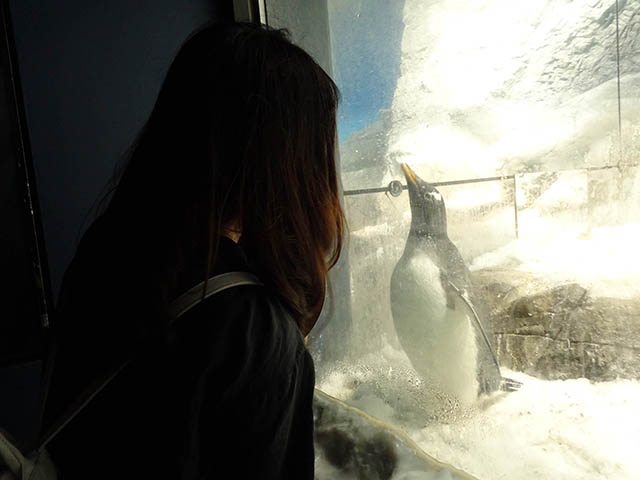 海遊館ではアデリーペンギン、キングペンギンと一緒。