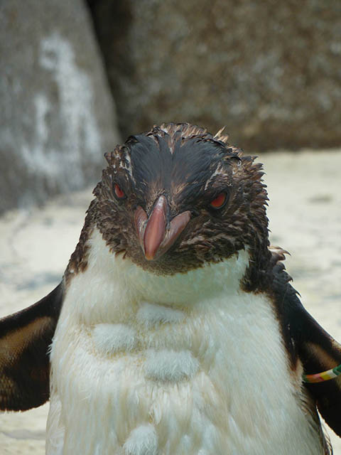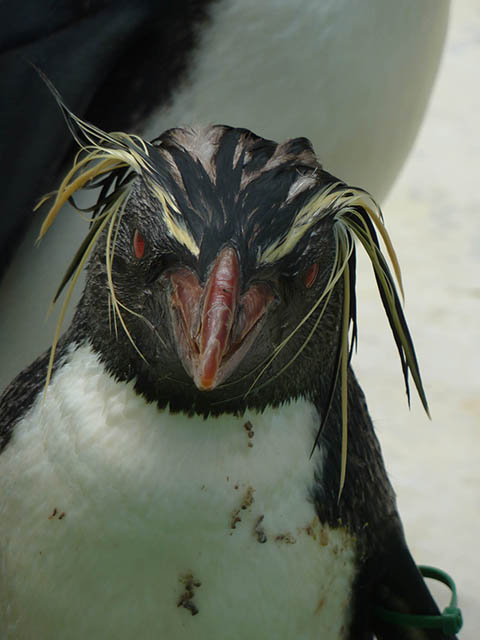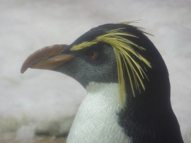 ミナミイワトビペンギンはくちばしのつけ根の皮膚が広い。