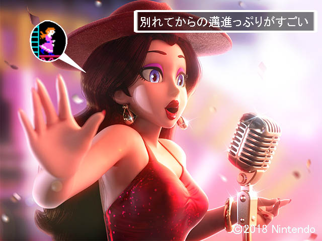 たとえばテーマソングの歌詞の「ジャンプウィズミー」だの「アイルビーユアワンナップガール」なんてところは「え、それってピーチ姫っていうよりポリーン自身のことでは?」なんて思ってしまったりするわけ。