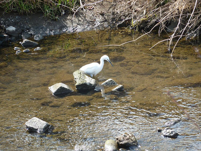 って、走り始めたら5分ほどで、お馴染みのサギ。