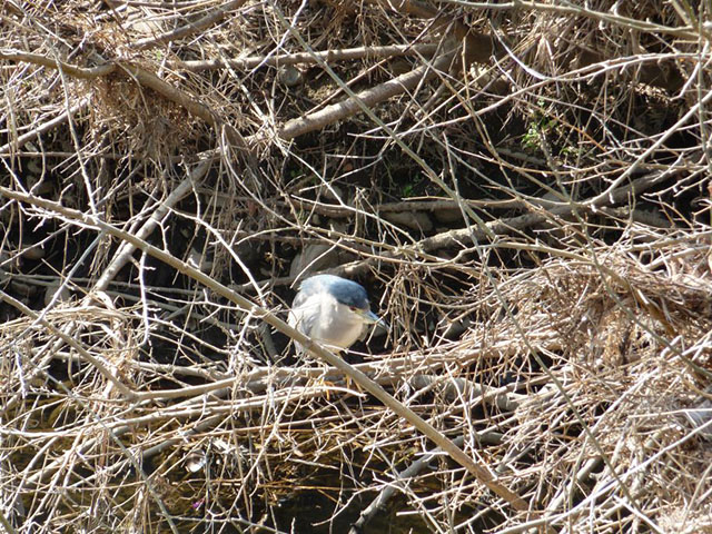 そのときはわからなかったので、家に帰ってから調べたところ、たぶん、ゴイサギ。