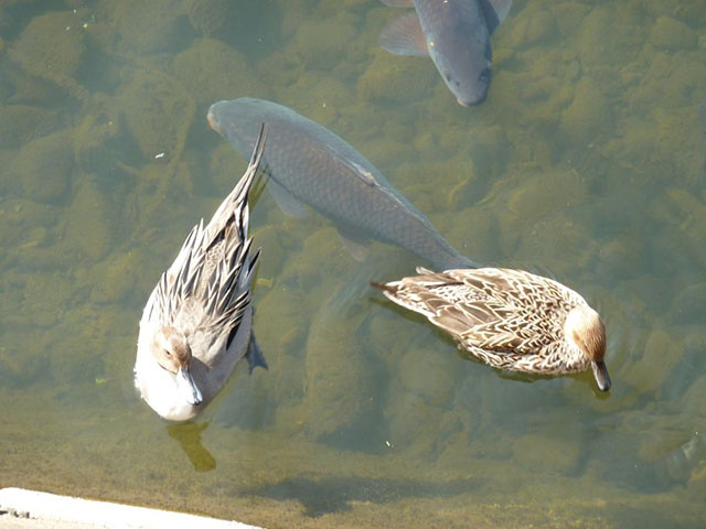 通りがかったおばちゃんに、何十秒も潜水して移動する所をよく見かけると教えてもらいました。