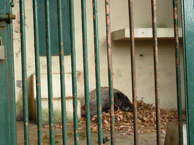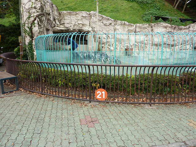 このエリア、 檻自体が坂の途中にあって、近づきづらかったり覗きづらかったりします。