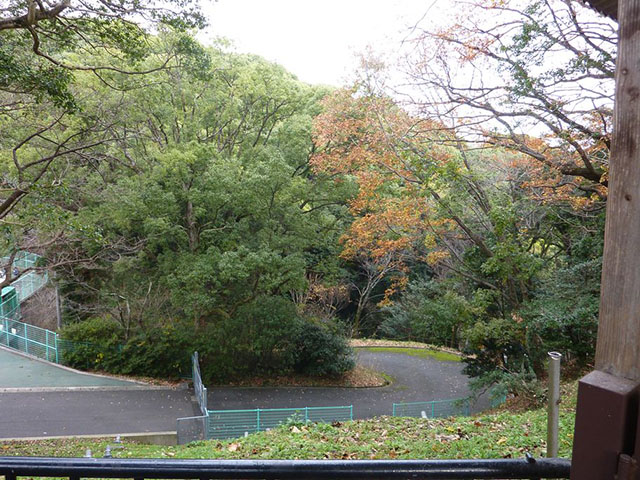 上の道を歩いていたら、下にキョンがいるのが見えました。