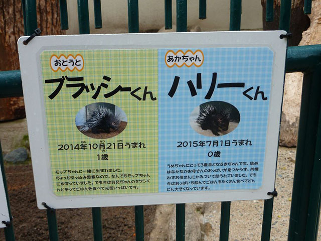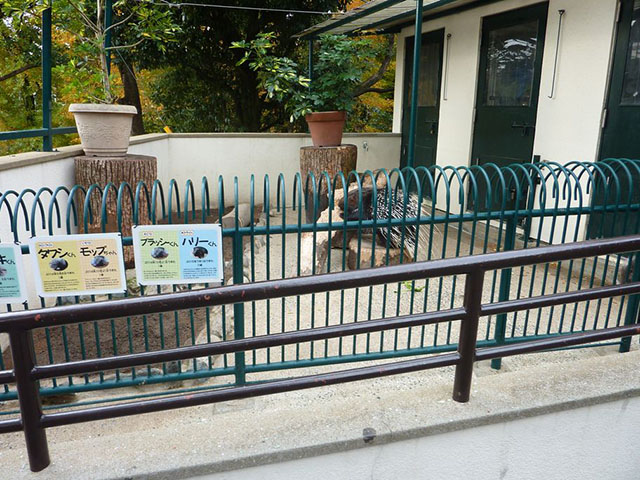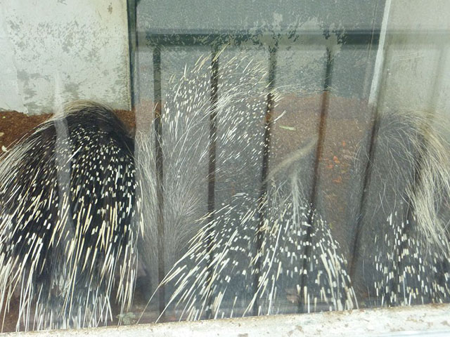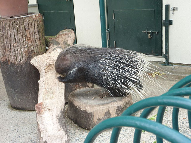 少し低めの柵の奥にアフリカタテガミヤマアラシ。