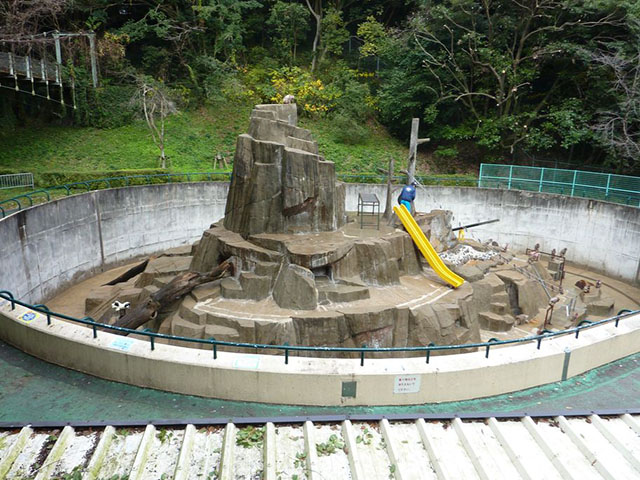 坂を下っていくと、向かって右にサルのエリアが見えてきます。