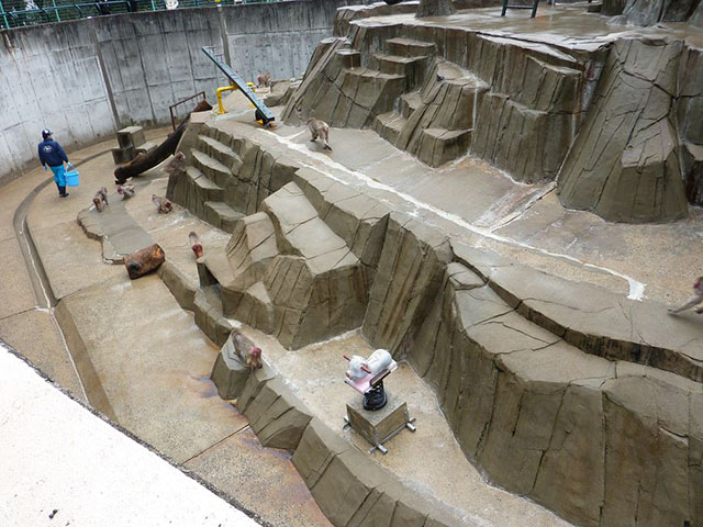 飼育員の存在が気になっているのか、掃除のクオリティを気にしているのか。