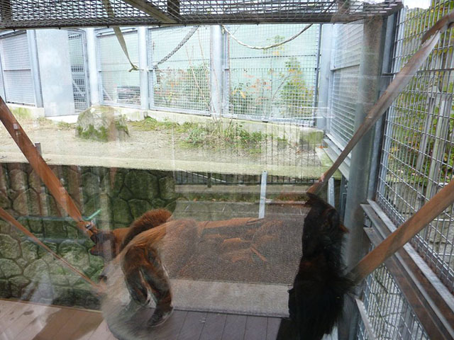 隣の檻にいた2頭はのんびり毛づくろい中。