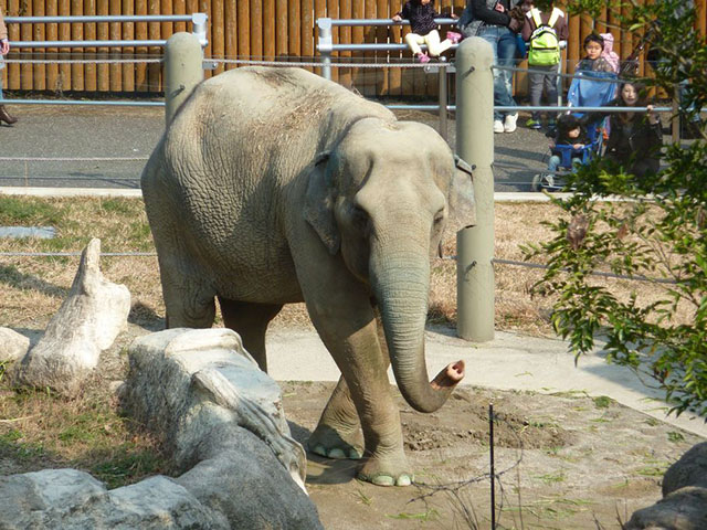 坂を上ると、さっそく目に入ってきたのが前回、写せなかったアジアゾウ。