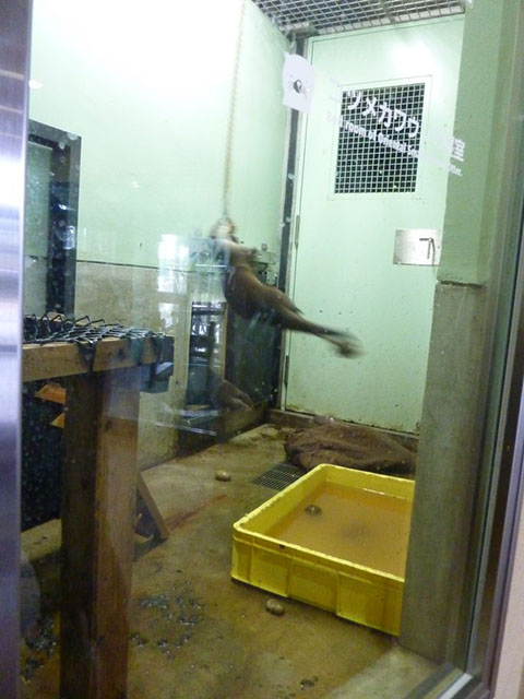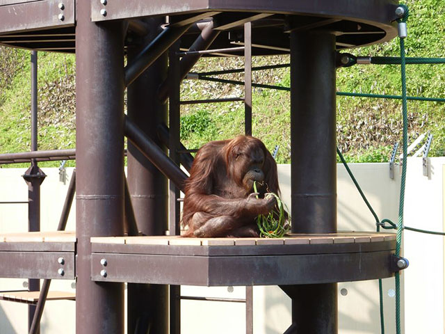 なお、取りつけられているはしごは人間が上るために必要なものであって、オランウータンは無視です。