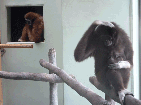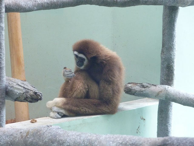 お馴染み、手袋をしているかのようなシロテテナガザル。