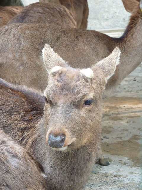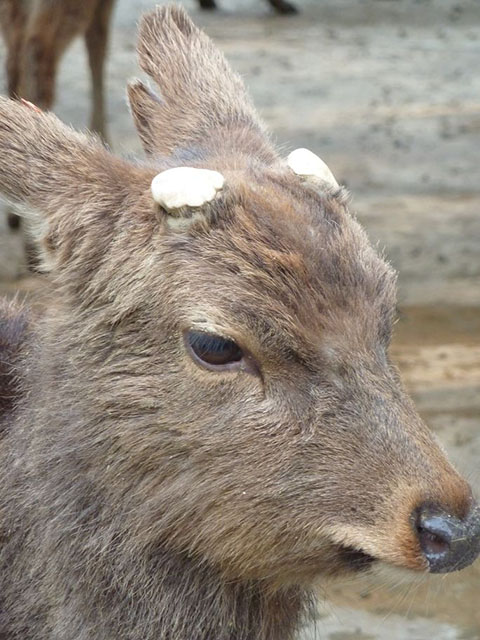 オスの角は抜け落ちていて、根元がゴーグルのようになっています。