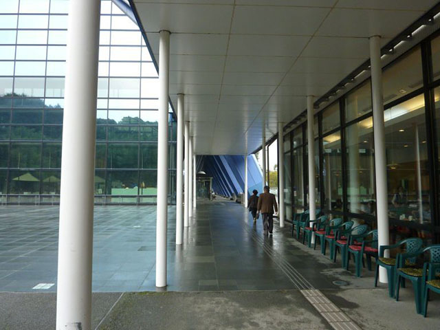 左の方の山が建物に映り込んでいますが、映っている境目の稜線が妙に馴染んで自然に見えるので、一瞬、どうなってるんだ?と思います。