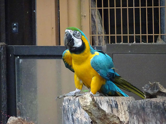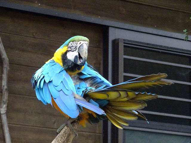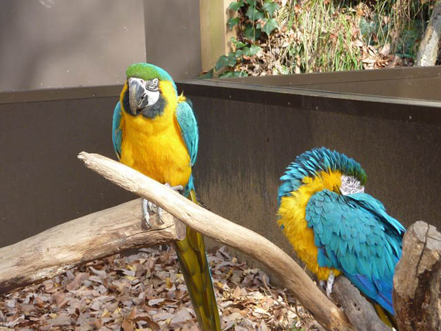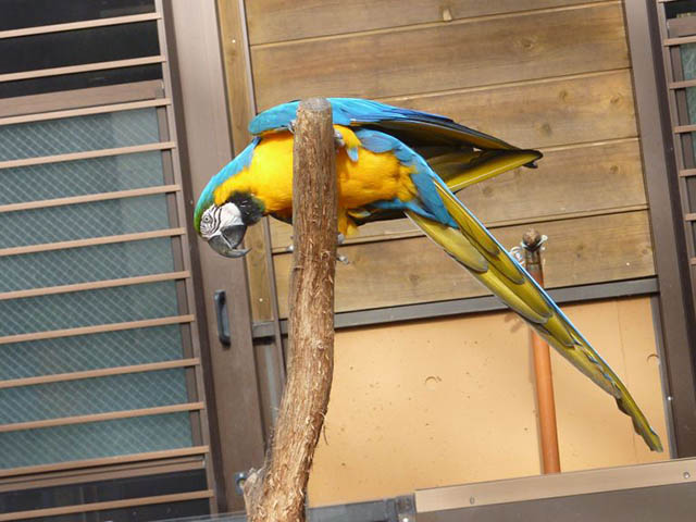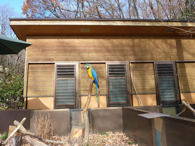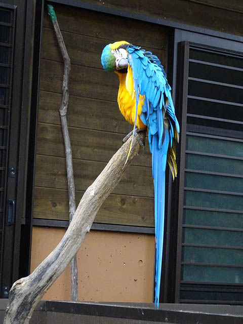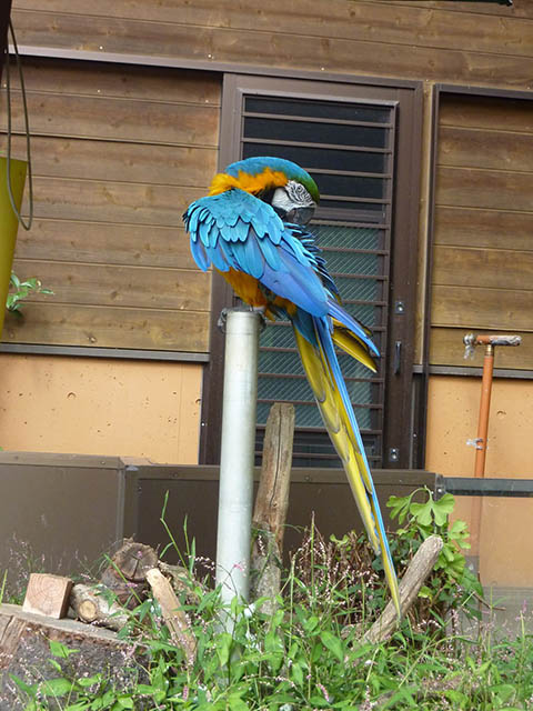 放し飼いになってるルリコンゴウインコ。