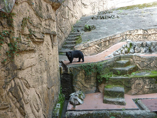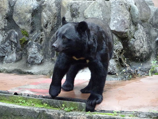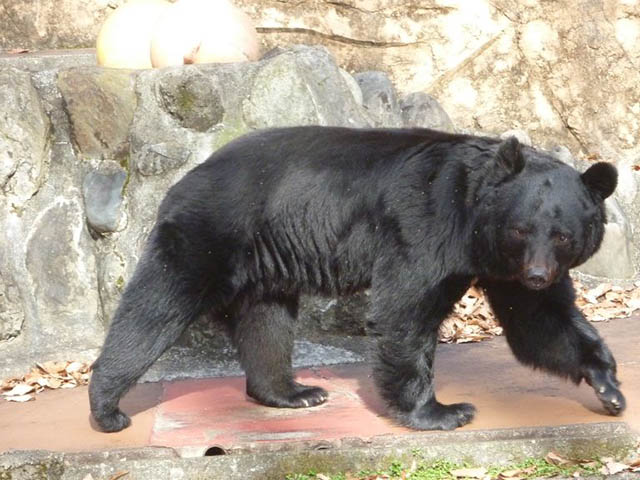 坂を上るとツキノワグマがいます。