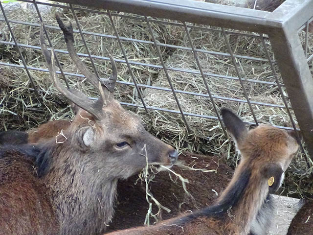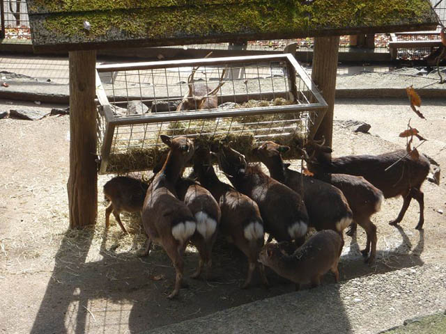 丘の下を見るとシカたちがごはんを食べているところでした。