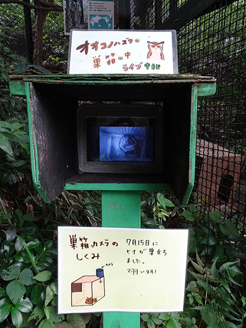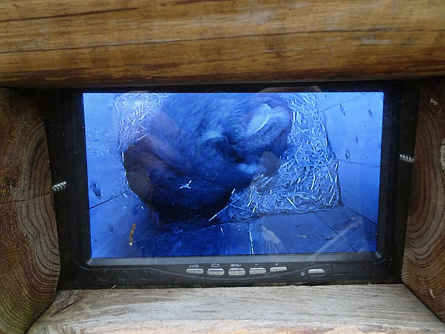 オオコノハズクの巣箱にはカメラが仕込まれています。
