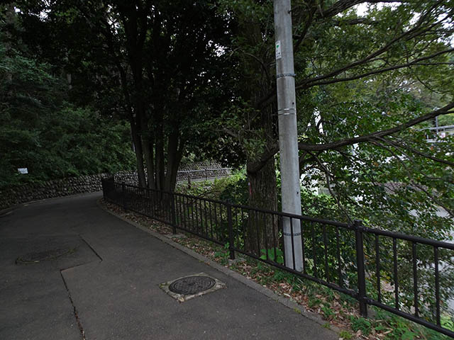 右下を覗くと正門に続くヘアピンカーブ。