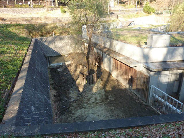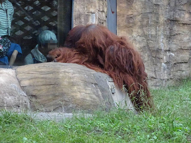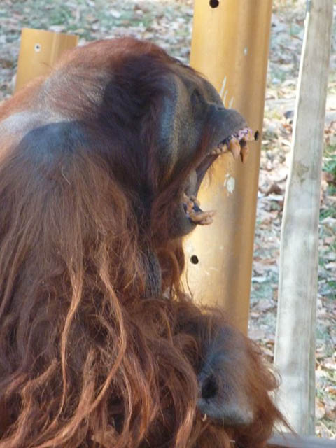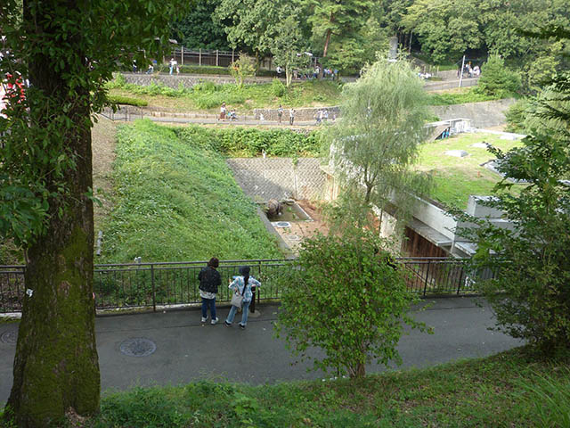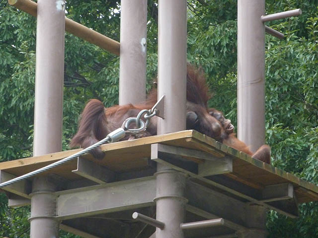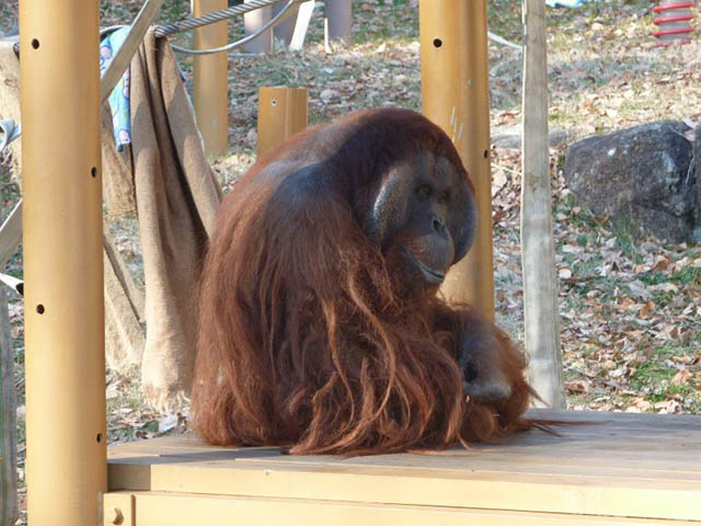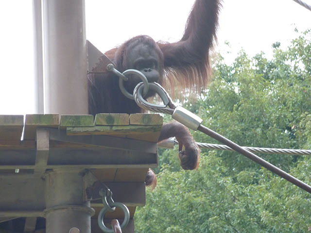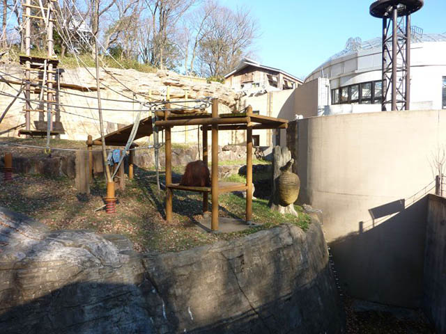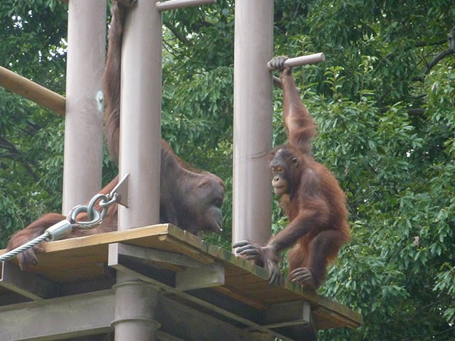 高台を降りるとボルネオオランウータンの施設が見えてきます。