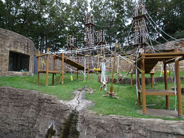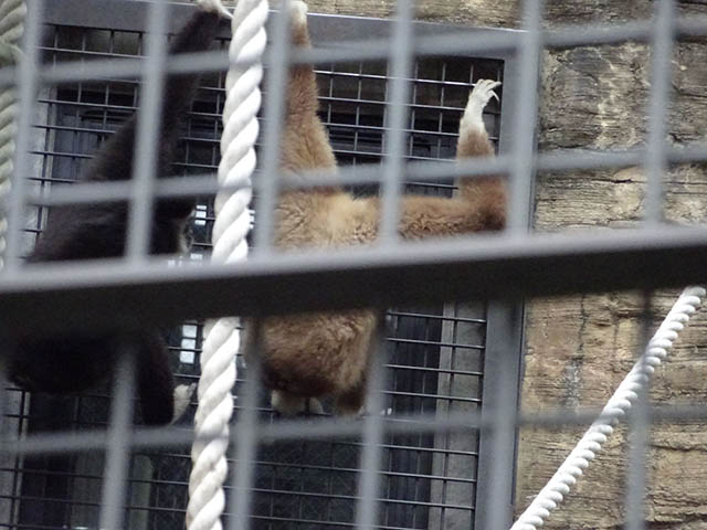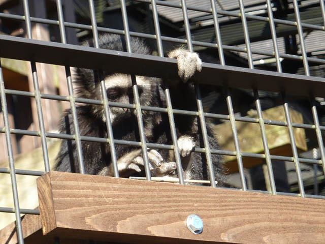 ごつい檻の中にいるので確認しづらく、あまり目立ちませんがシロテテナガザルがいます。