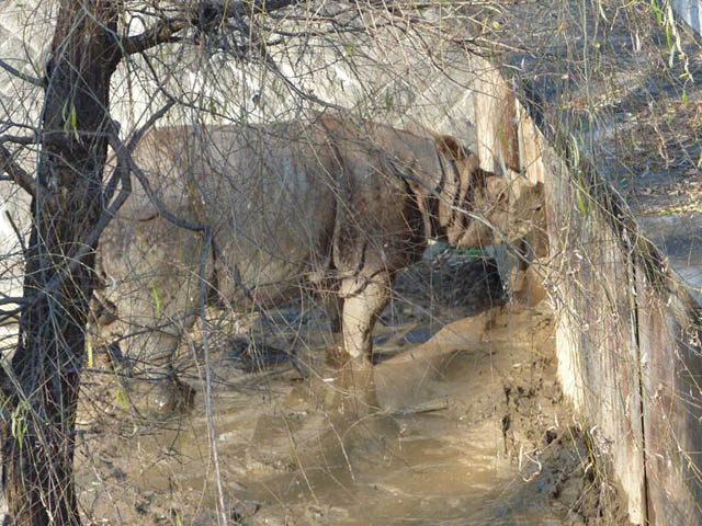 アフリカのサイと違って、ホームはけっこうぬかるんだ所のようです。
