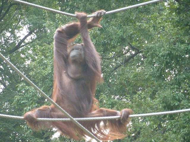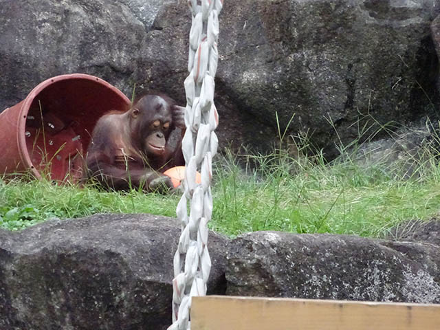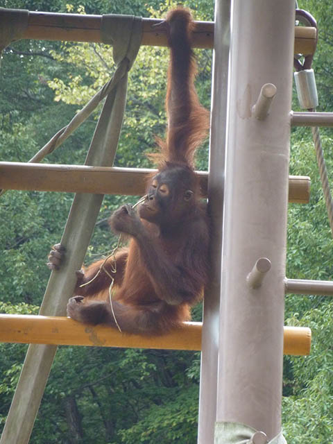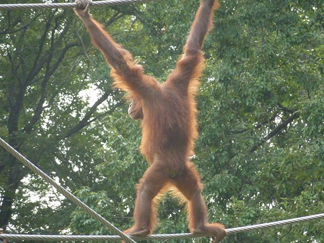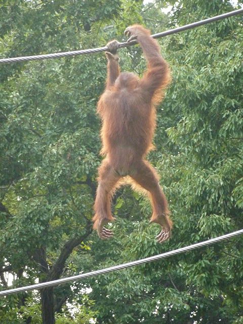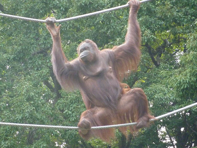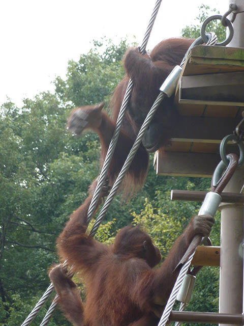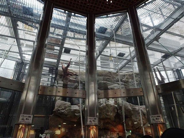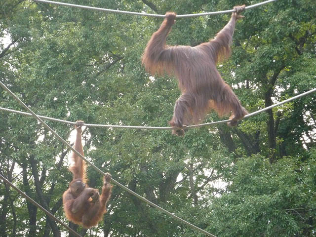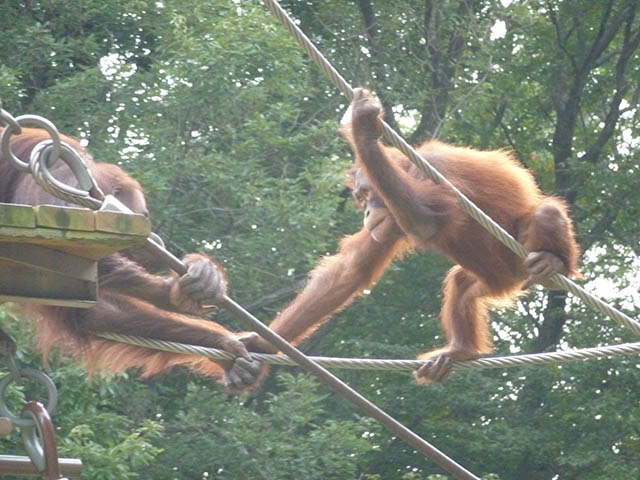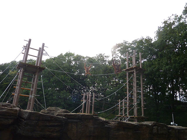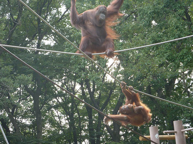 室内ではまた別のオランウータンたちがブラキエーションして大騒ぎ。