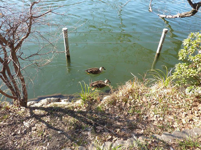 ひととおり水鳥たちを見終わったところでさっきの道に戻り、分園の目玉ともいうべき水生物館に向かいます。