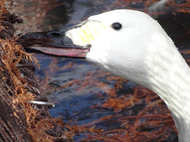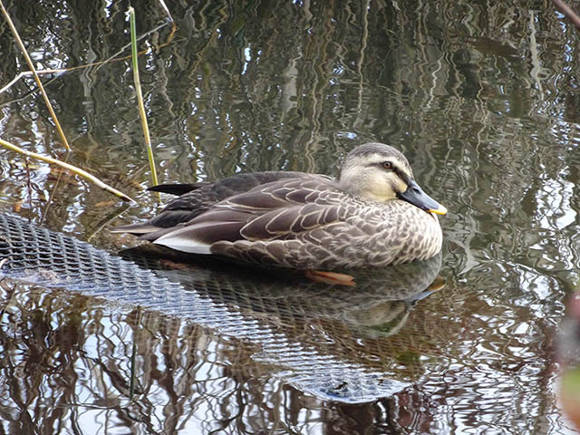 落ち葉をつまむわけでもないだろうし、ネットにくっついた藻をこそぎとっていたのかな。