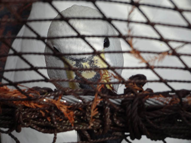 橋の下の壁にかかっているネットを一生懸命ガジカジやってます。
