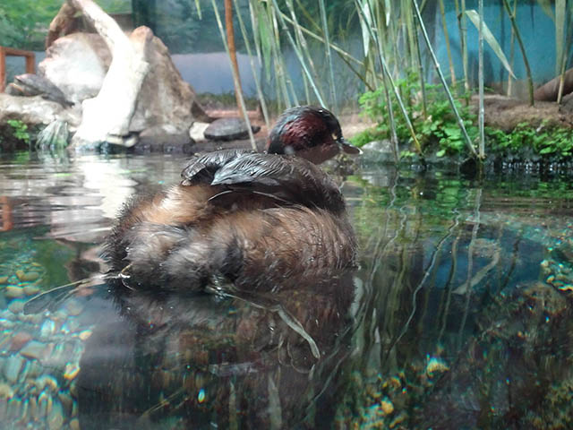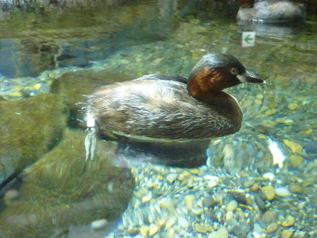 最後の大きな水槽には カイツブリがいます。