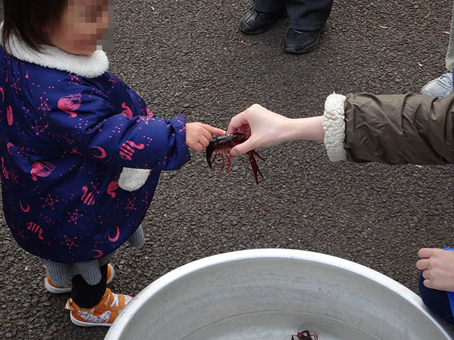 金だらいの中にはアメリカザリガニ。