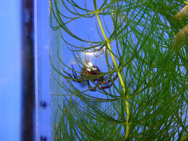 ミズグモは水の中に空気を持ち込んで巣を作ります。