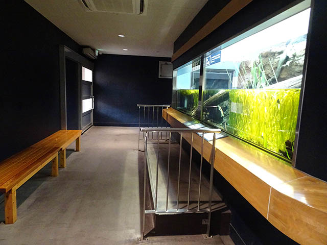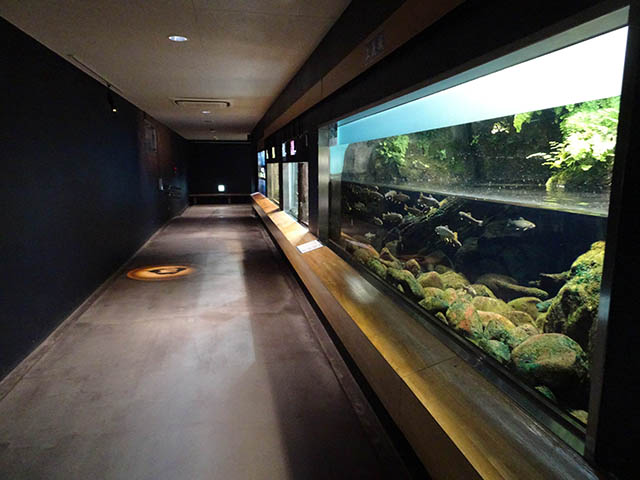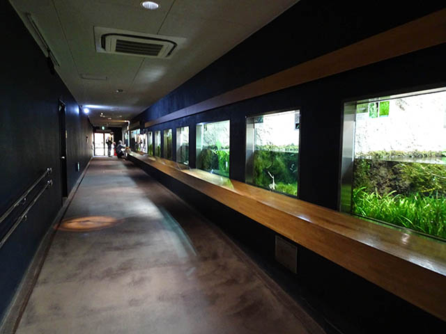 向かって左の方に行くとたくさんの水槽が並んでいます。