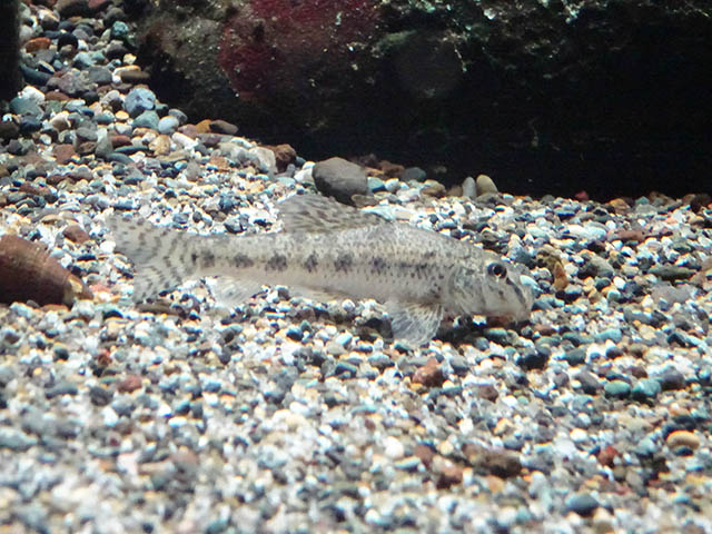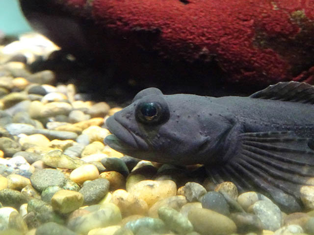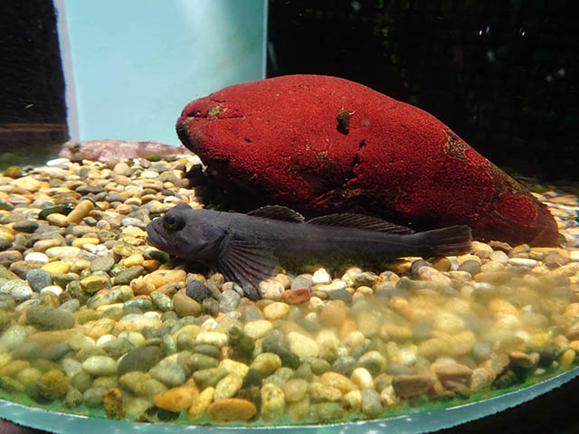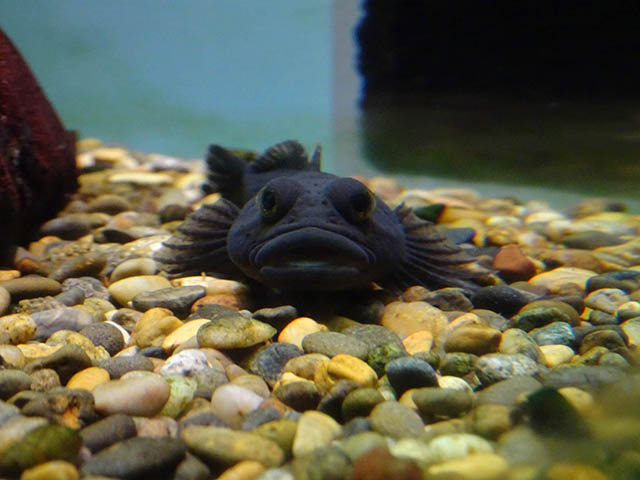 円柱の水槽に隔離?されているカジカ。